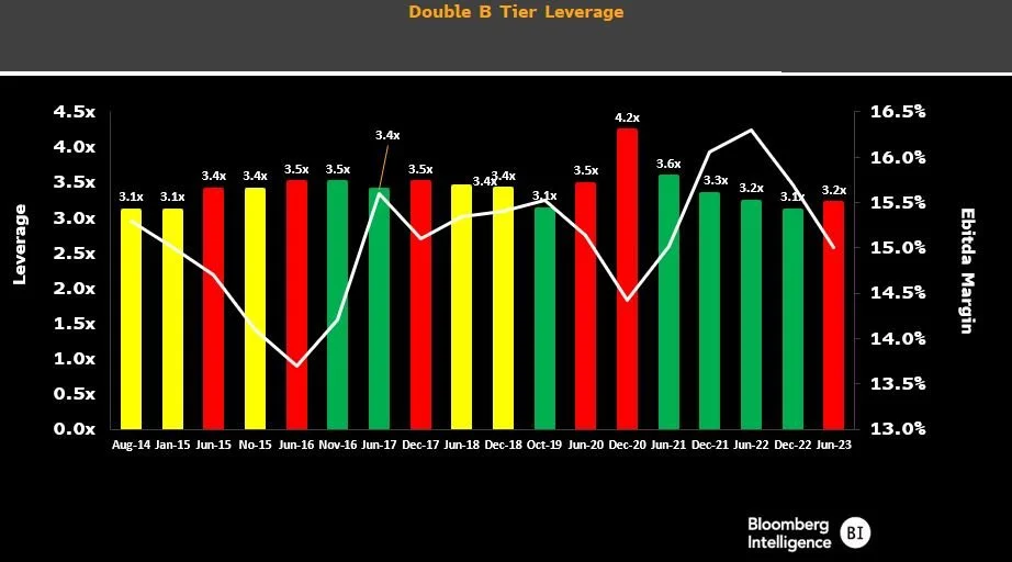 BB leverage has crept upward meanwhile B leverage metrics show improvement